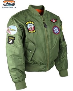 Picture of kids wwii aviator flight jacket. Kids ma1 flight jacket | silvermans. Kids us flight jacket replica. A great kids flight jacket complete with 7 badges, makes a great gift for any little aspiring pilot or soldier. Two inside slash pockets with snap closure.